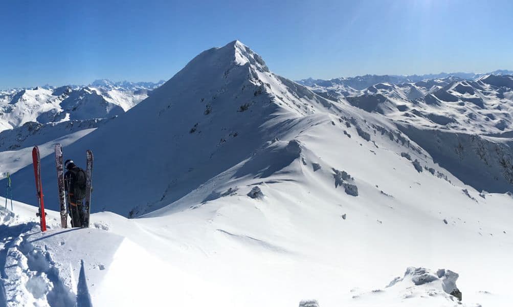 The summit to the base is an incredible 1000m vertical. The Peak Ascent is a 3-hour climb from the top of Apex Tow, giving you epic views for hours and deep powder slopes on your way down!