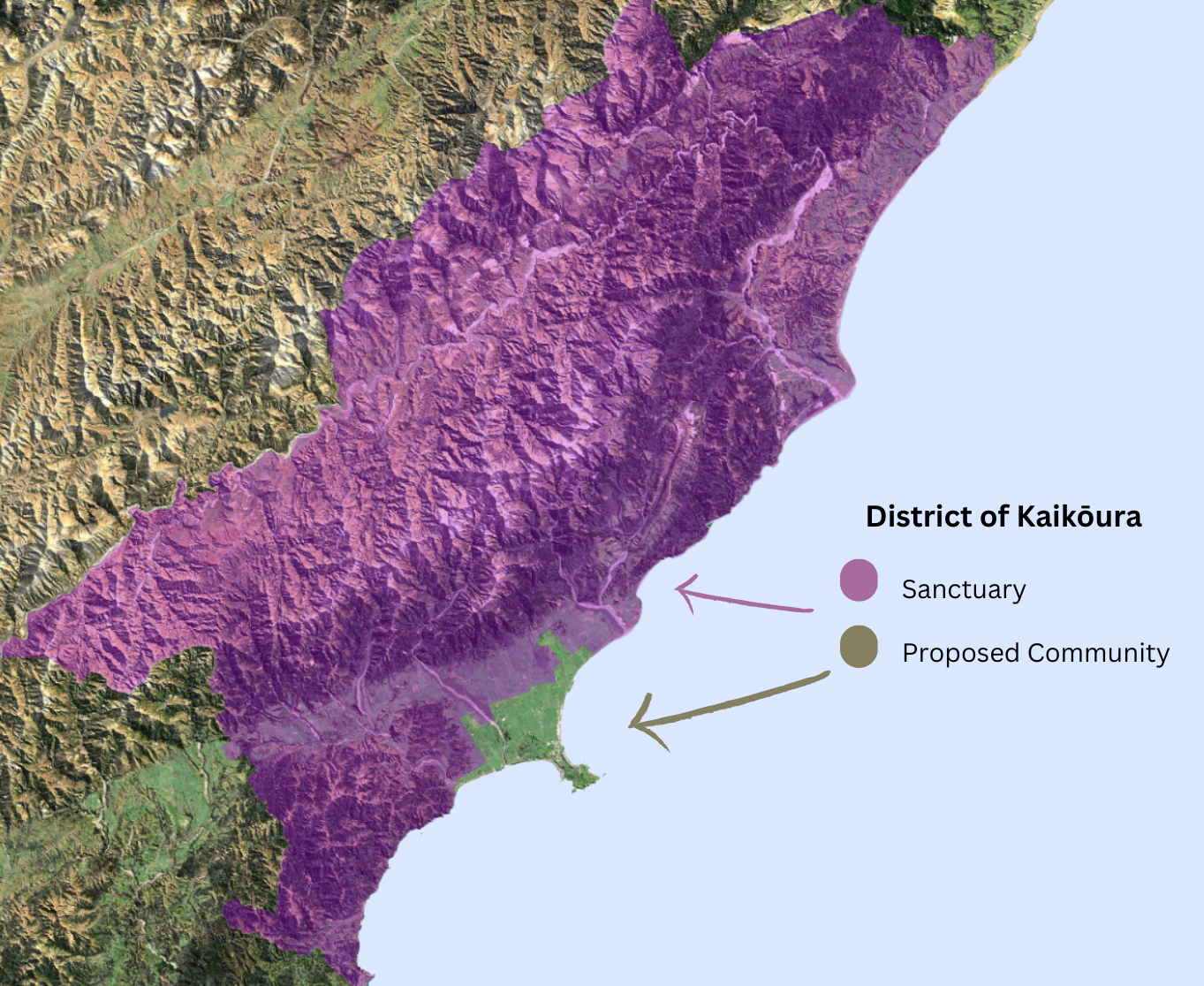 Granted in September 2024, the Dark Sky Sanctuary status applies to almost the entire Kaikōura District, covering approximately 2,039 km² (787 sq mi), or around 98% of the district, including extensive areas of Department of Conservation land.